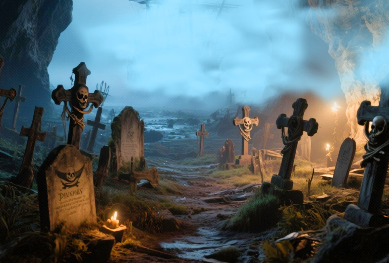 Un cementerio pirata lleno de esqueletos y maldiciones. Sombras que se mueven y cofres misteriosos esperan a los más valientes. ¿Escaparás de las almas errantes?