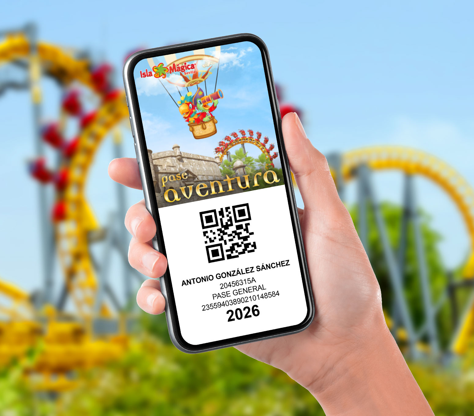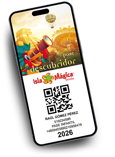 Este año, tu Pase de Temporada va siempre contigo en tu móvil en formato digital. De esta forma, evitas tener que recoger el soporte físico y podrás acceder a Isla Mágica desde el primer momento, ¡sin perder tiempo!