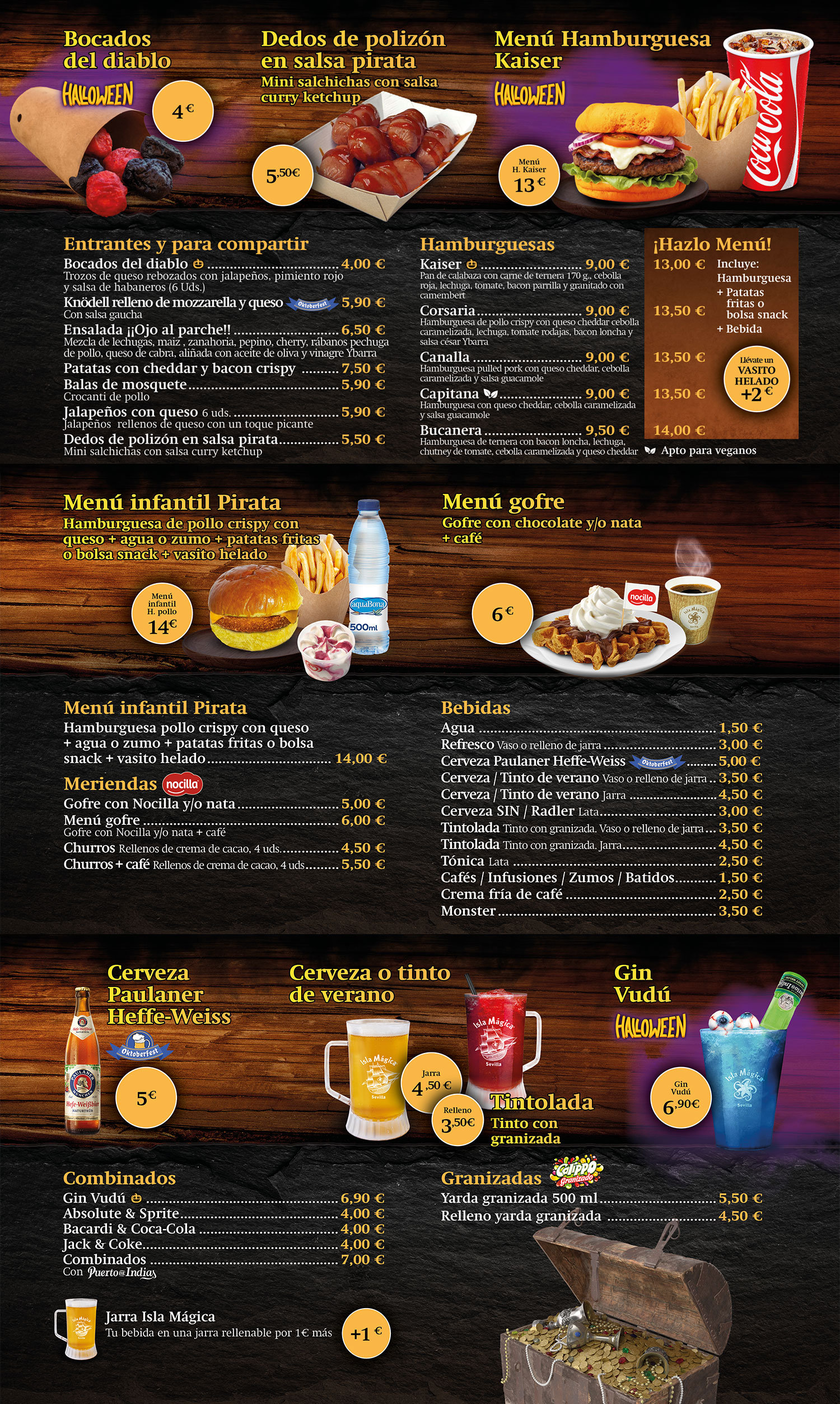 Prueba nuestros exclusivos Grogs: refrescantes bebidas con sabores piratas. Deliciosos churros rellenos de chocolate y menús de bocadillos para llevar. Bar con terraza en plena zona pirata.